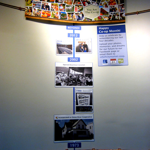 In celebration of Co-op Month and the upcoming 40th Anniversary of Onion River Cooperative, we're asking you to share your memories from the last four decades! Upload your photos, stories, and dreams for our Co-op's future to our Facebook page or email them to info@citymarket.coop. We'll print them out and add them to our life-size timeline on the wall near the check-out lines!