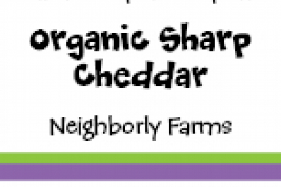 Organic Sharp Cheddar Neighborly Farms Randolph Center, VT Raw organic cows' milk Rindless Sharp and creamy Pairs well in corn chowder and cornbread